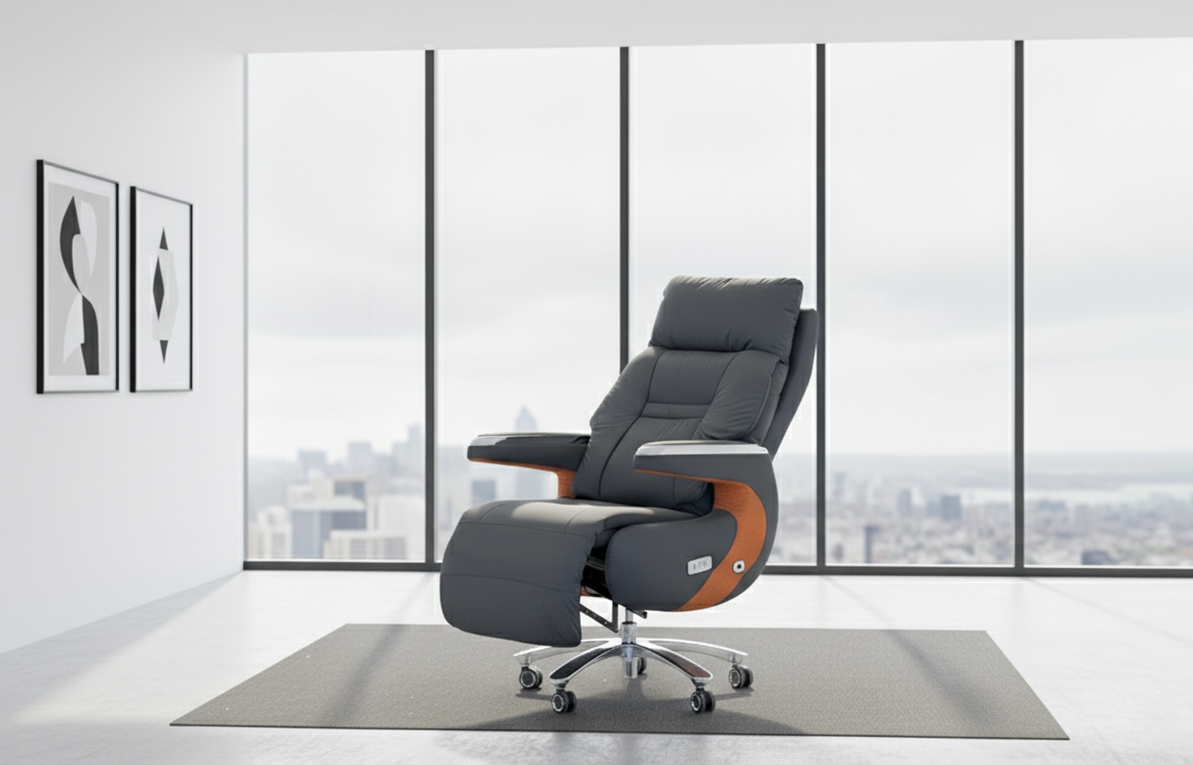 This executive high-back office chair delivers the ultimate in comfort and contemporary style. Featuring advanced electric controls, this chair is designed for effortless, personalized adjustment, making it the perfect choice for the modern leader or professional demanding superior support during long workdays.