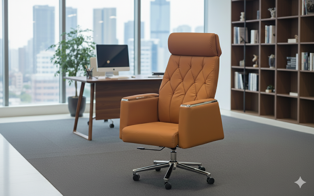 This luxurious high-back office chair is designed for superior comfort and professional style, making it the perfect seating choice for an executive office or sophisticated home workspace.